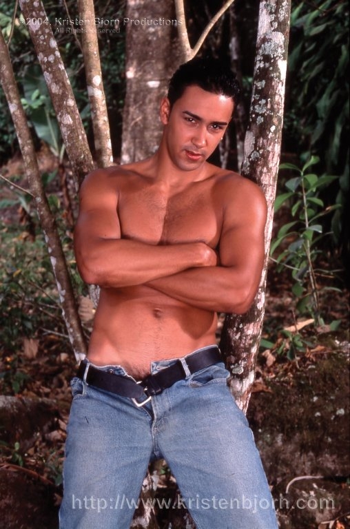 Muscle hunk Rusty Stevens posing outdoors